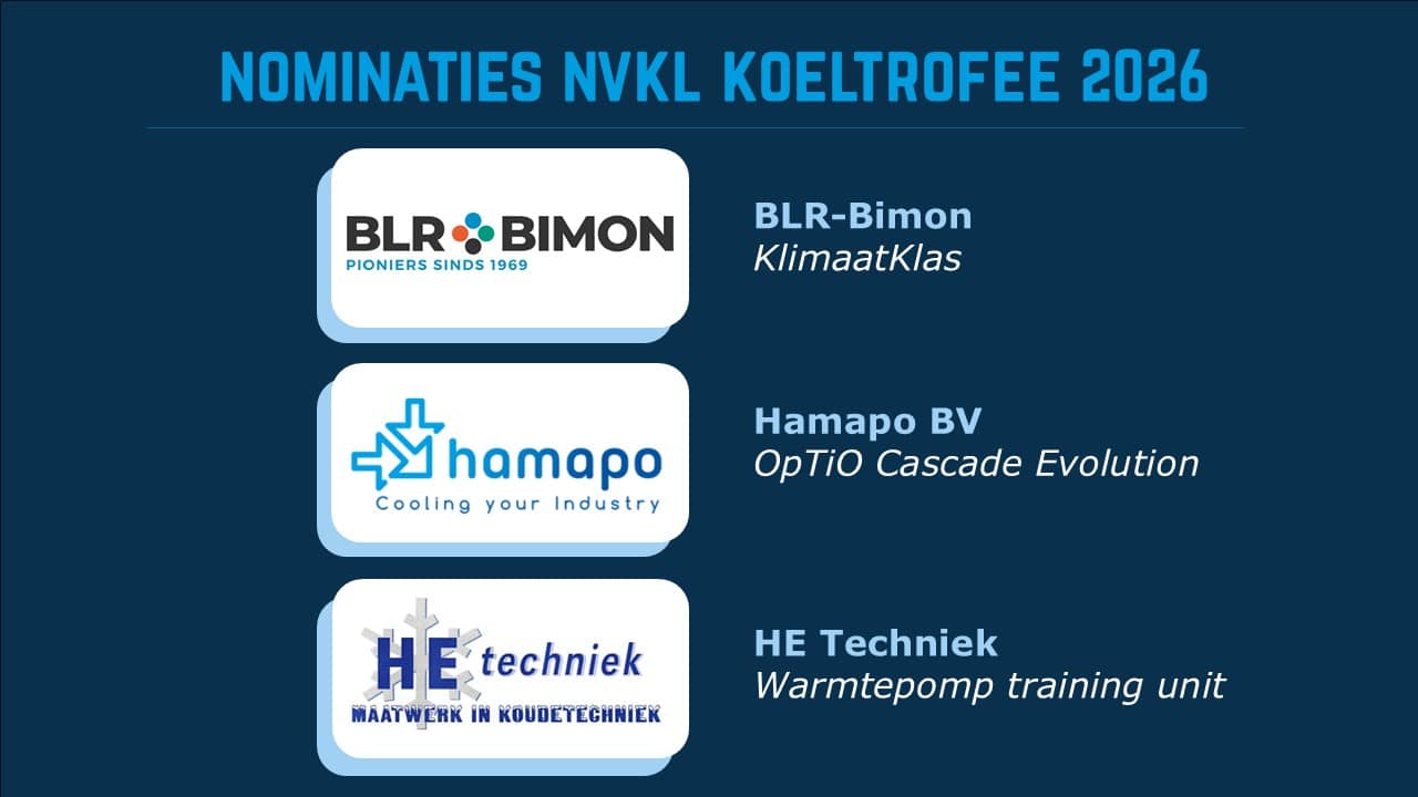 De jury van de NVKL Koeltrofee heeft drie inzendingen geselecteerd die zijn genomineerd voor de Koeltrofee 2026. De genomineerden laten zien hoe innovatie, vakmanschap en toekomstgericht denken samenkomen in de koel- en klimaattechniek.
